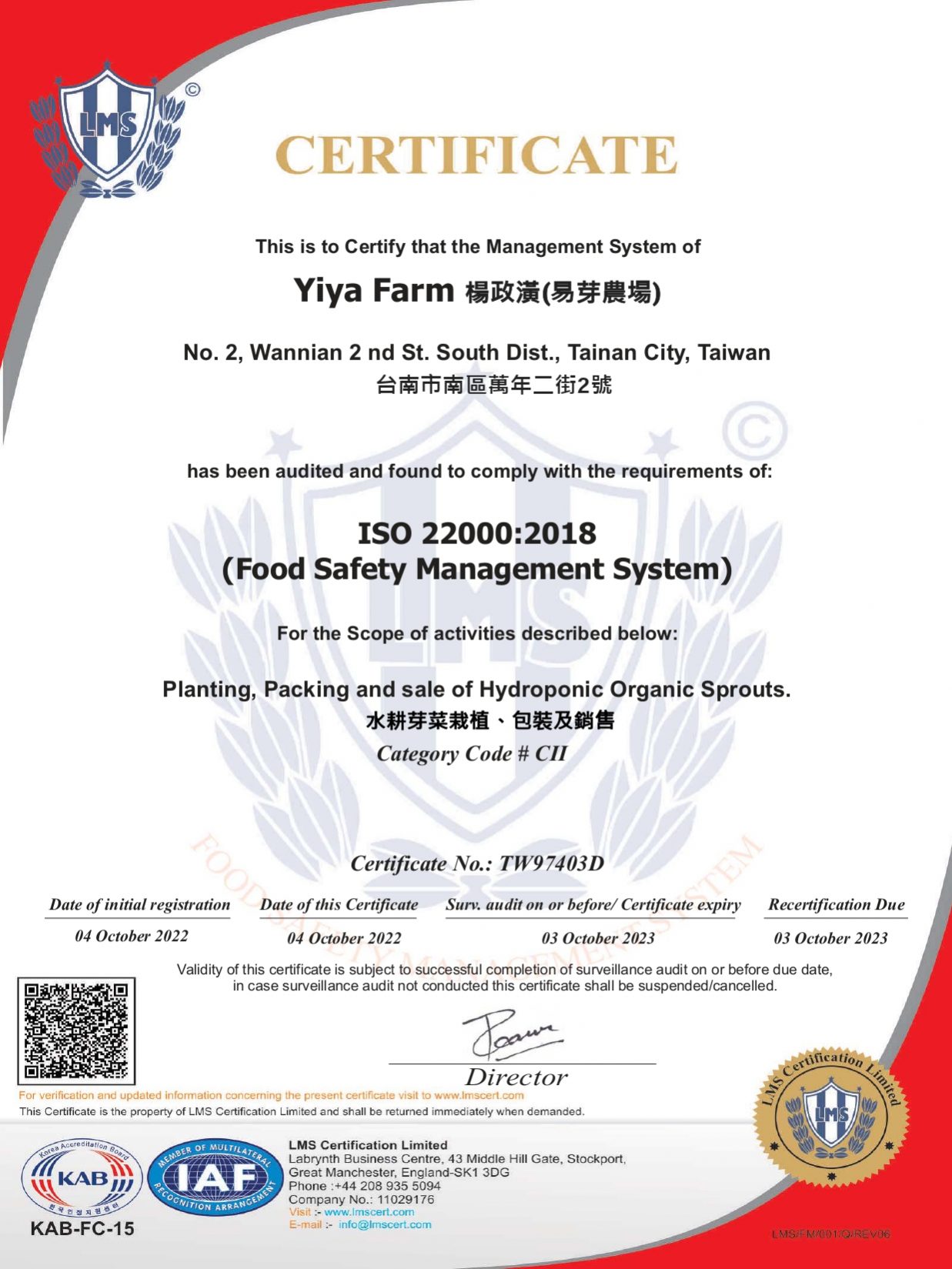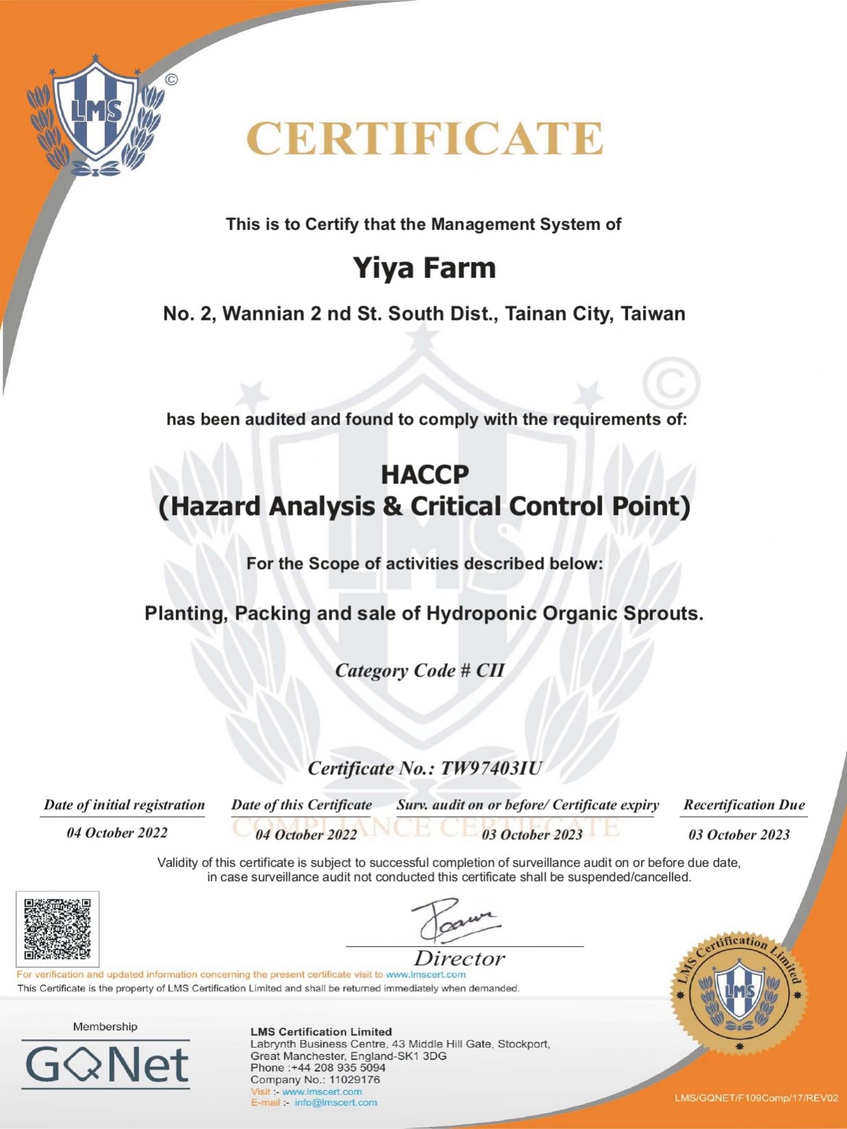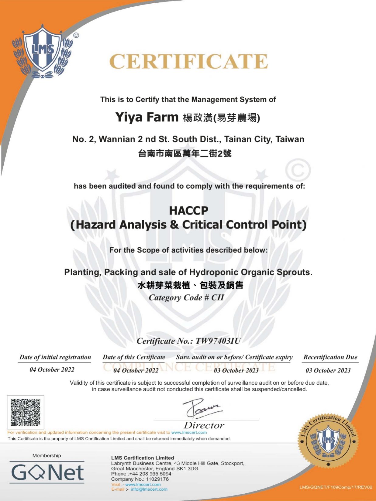 多項食品認證保證